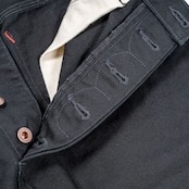 フロントはボタンフライ。小さい方のボタンも刻印は無しですがメッキ別注で作りました。