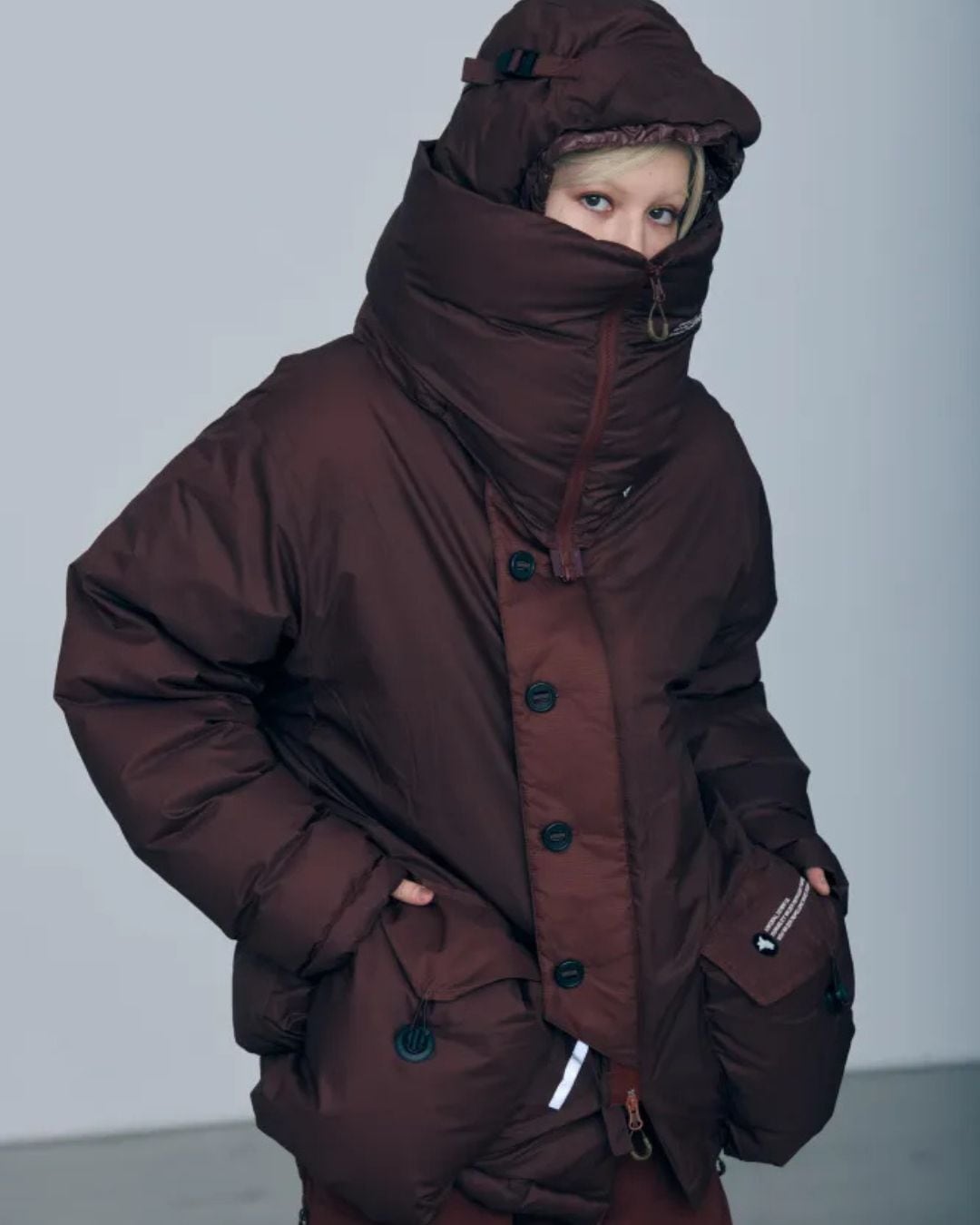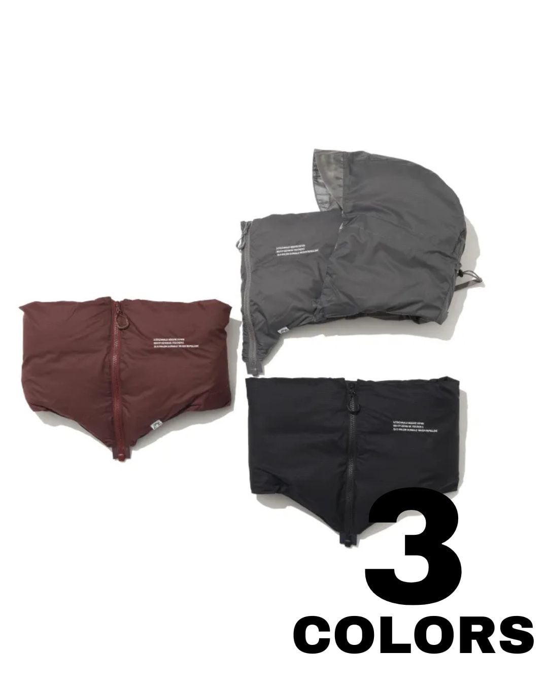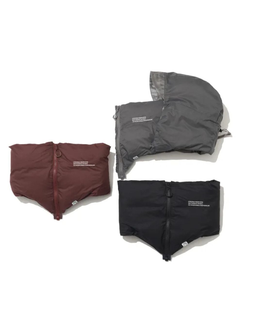 A down snood made with 15D super water-repellent nylon.