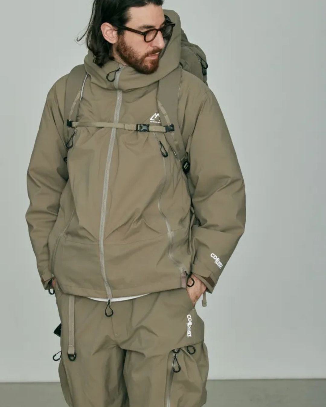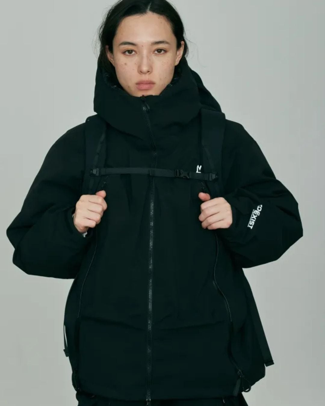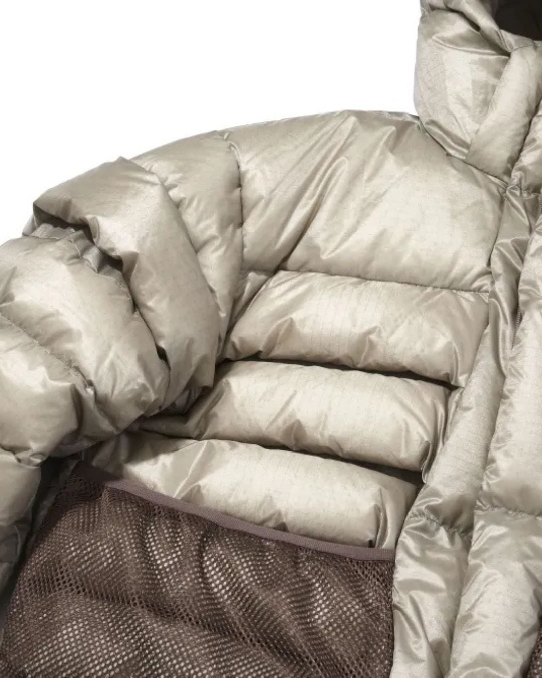 無駄なデザインを排除し、必要なディテールに+アルファを持ってきたハイスペックダウン。左右のジップ一本で上下2つのポケットにアクセスできるようにしてある。内側はチューブダウンで製作してあり、ダウンが中で回ってつぶれないように設計。 COEXIST 耐水・透湿20000、850FP(95:5)
