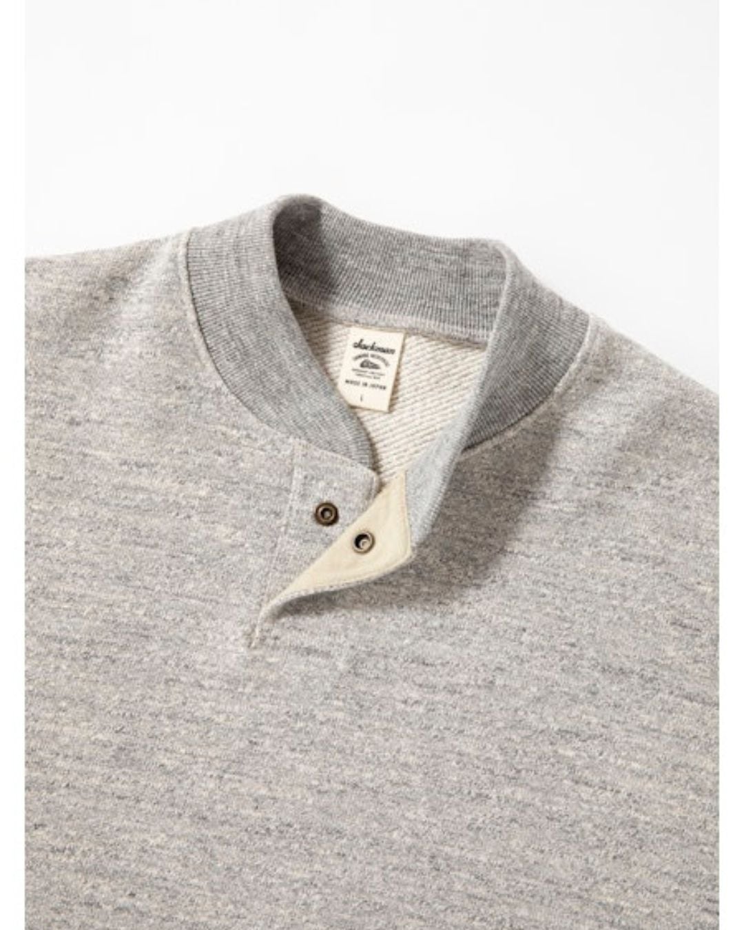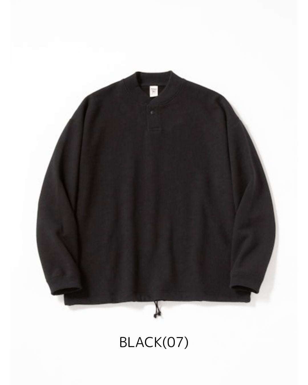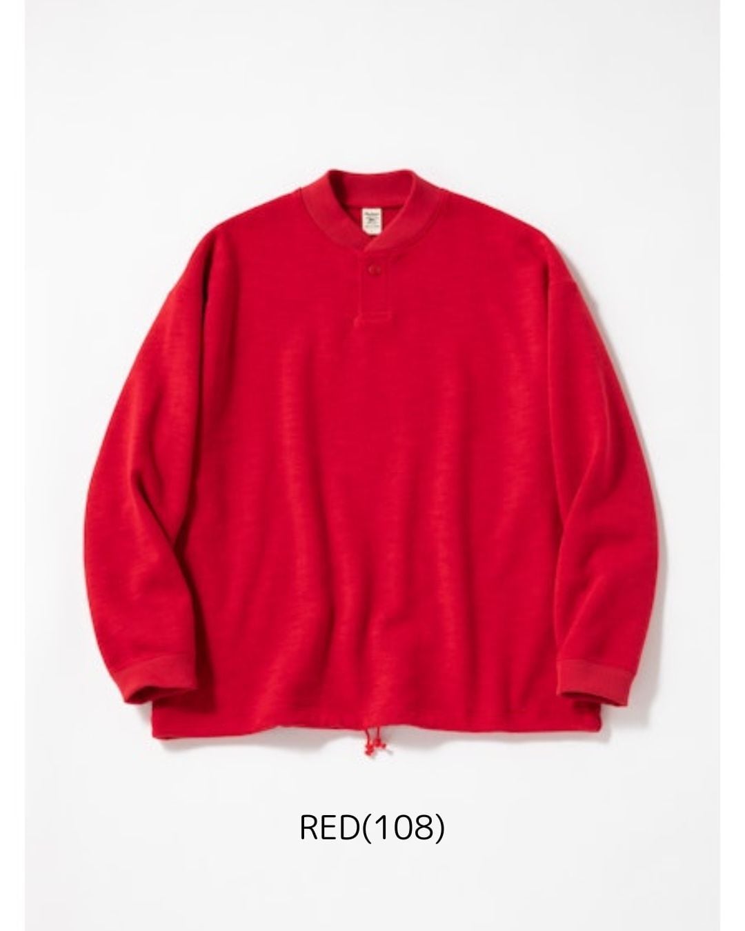 太番手の国産糸を使用し日本国内で編み立てた肉厚なGG(ガラガラ)裏毛素材のGJネックです。デザインは野球場で働くスタッフが着用していたグラウンドジャンパーを参考にGG裏毛の肉厚感、ボリューム感とのマッチングを考えてゆったりとした肩周りと裾にかけてシェイプせず自然に落とした設計にしました。また襟先のボリュームが落ちないように職人の技術で丁寧にいせ込み馴染みの良い首元になる工夫をしました。裾は紐で調節可能です。Baseballユニフォームのような首元のデザインと初秋から着用できるゆとりのあるシルエットが特徴です。