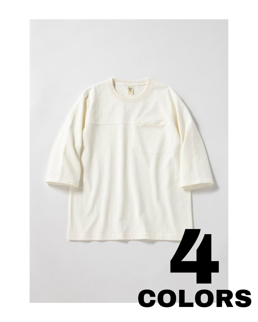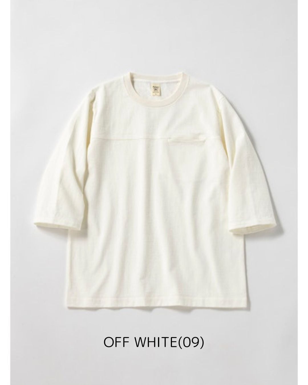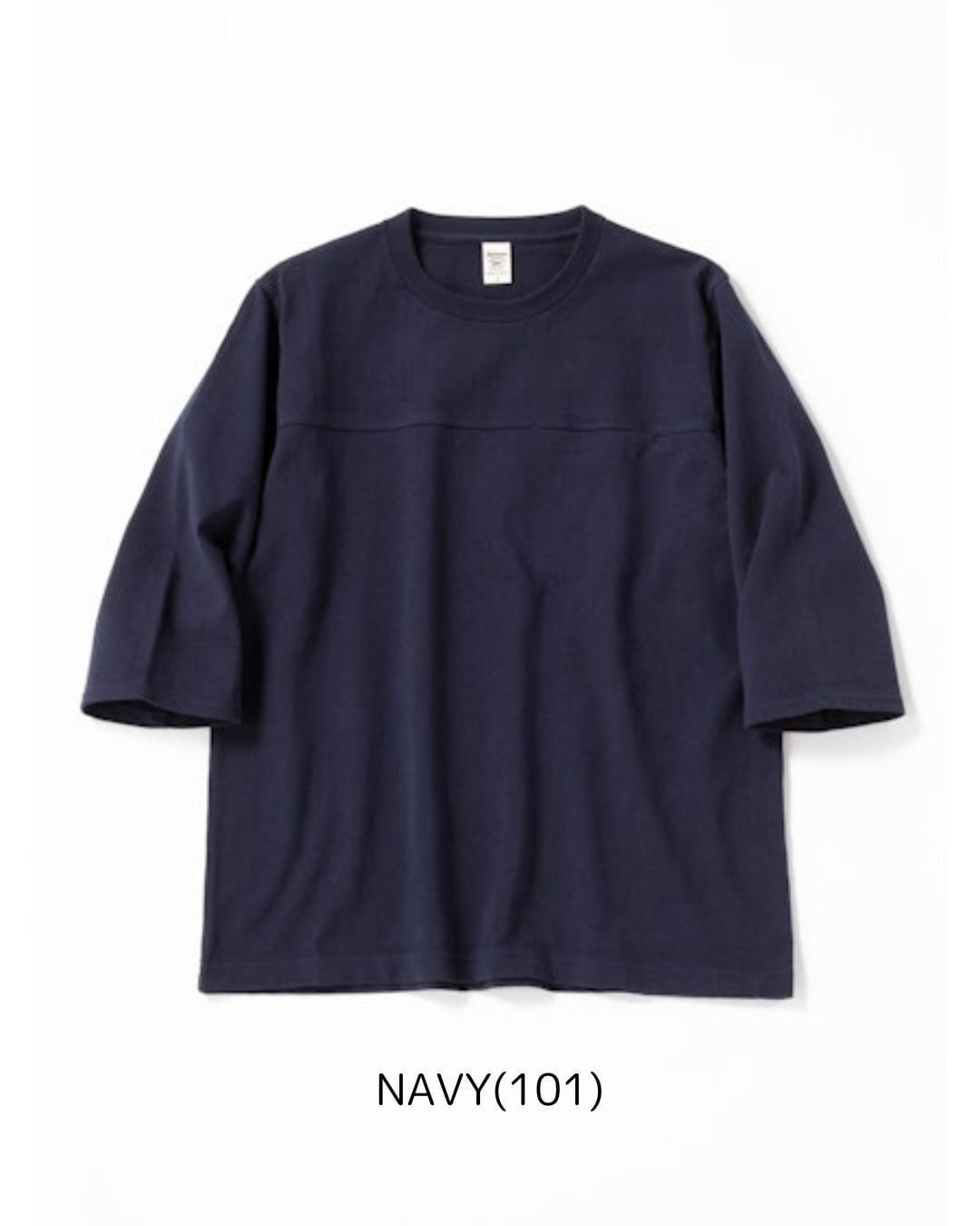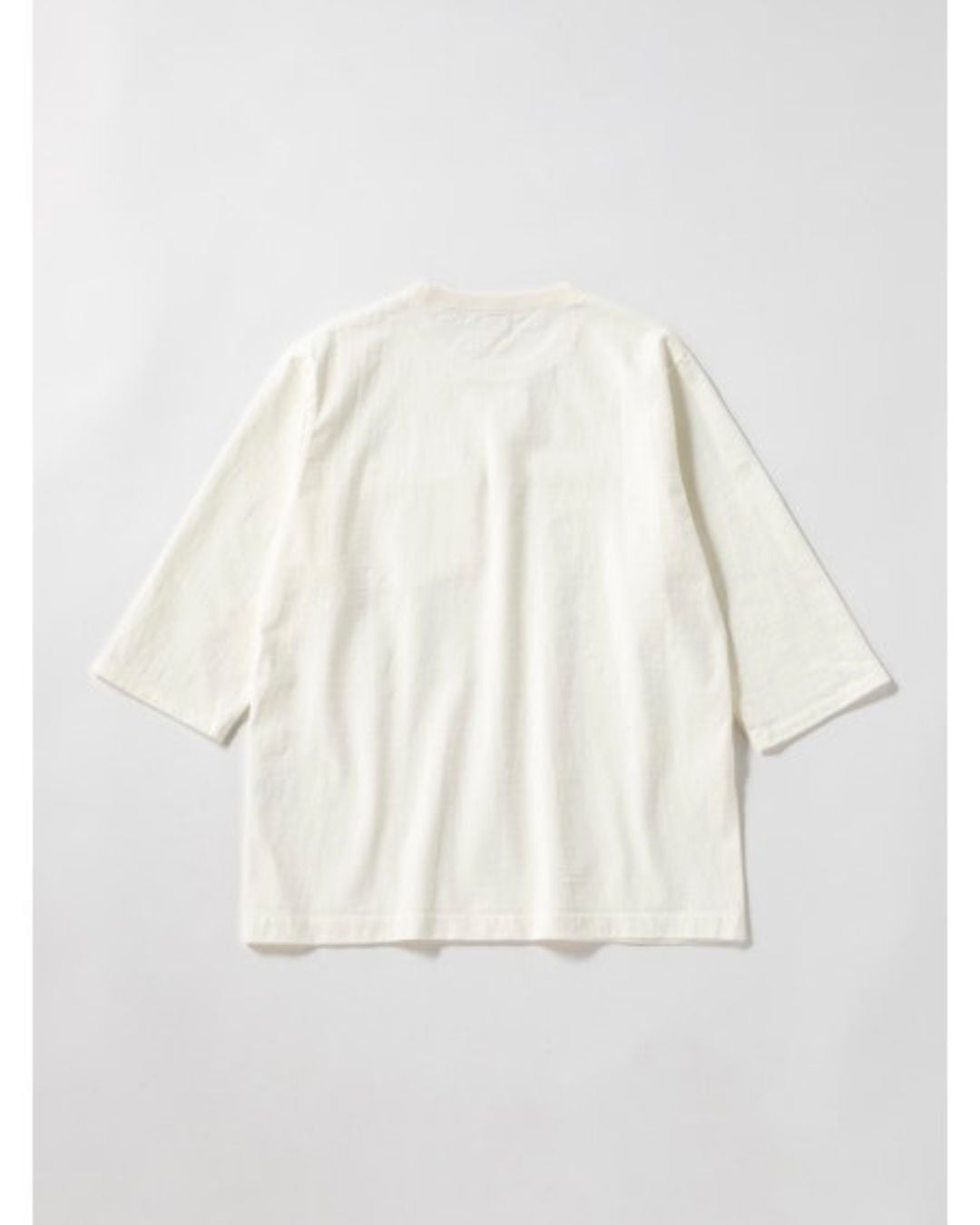 アメリカ産のコットンを使用して吊り編み機で限界まで度目を詰めて編み立てた約11.5オンスの極厚素材「ドツメ天竺」を使用したハーフスリーブTシャツです。均等に極限まで度目を詰めたドツメ天竺生地は着用と洗濯を繰り返しても縮みやゆがみが起こりにくいのが特長です。身生地に合わせスウエット並みのしっかりした厚みのリブを使用し全体のバランスを整えました。透けない、汗染みが目立ちにくいといった見栄えの安心感があるTシャツです。身巾や着丈はドツメ半袖T‐Shirt(JM5444、5445)と同じですが袖丈は半袖に比べて約18㎝長いクラシカルなアンダーシャツのような雰囲気です。胸の切替部分には熟練の技術でシームポケットを収まり良く配しました。