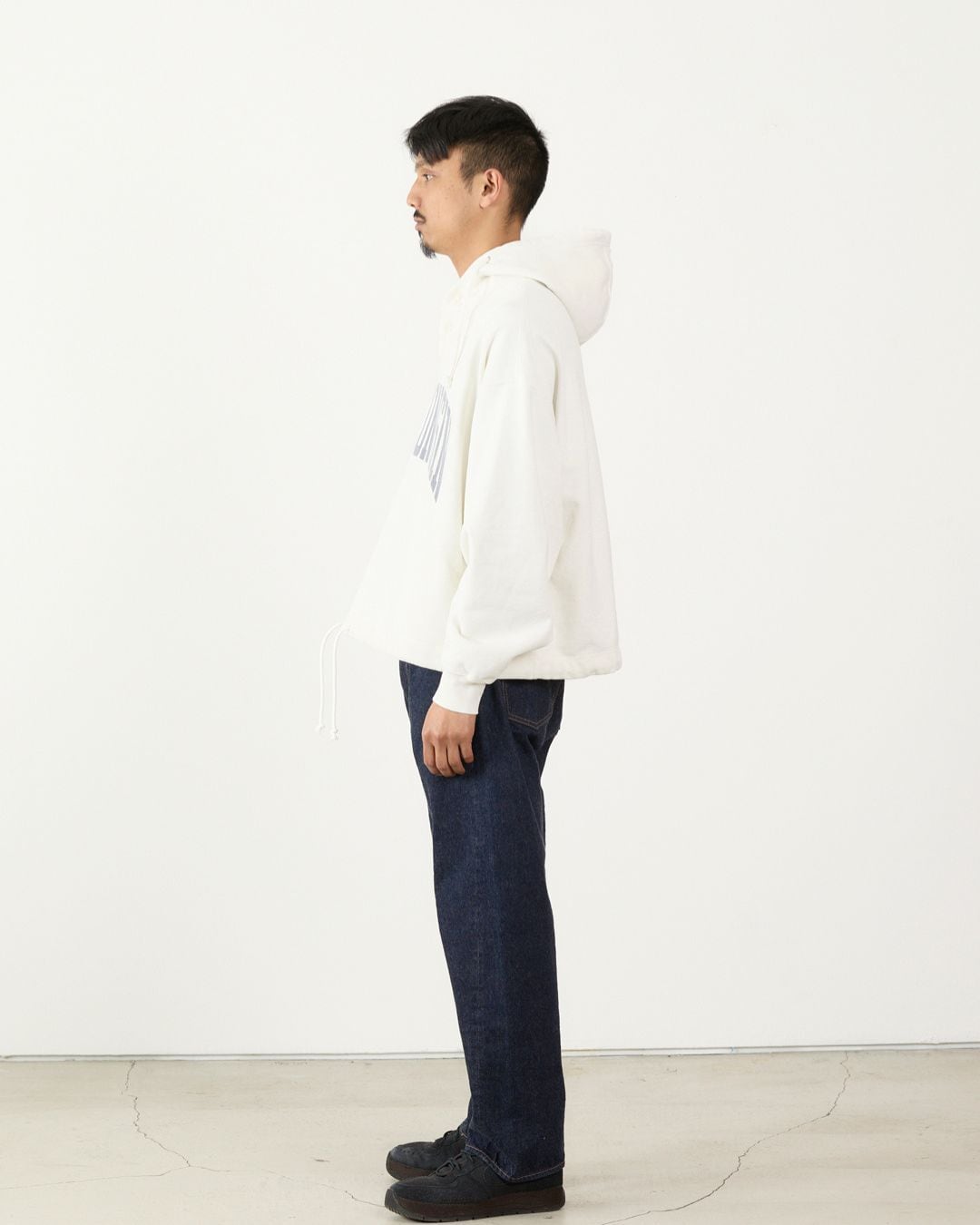 裾にはハトメ付きのドローコードを配し、シルエットやサイズ感の調整も自在。