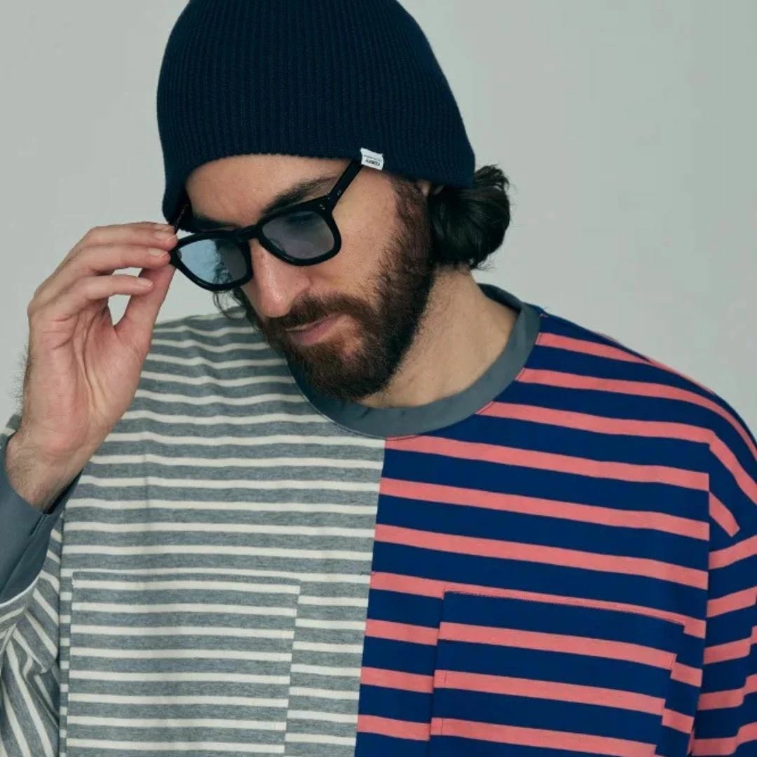 24SSにリリースした色違いのボーダーを中心で分けた丸胴タイプのTシャツ同型。