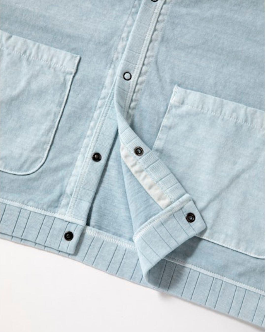 乾燥感がありザラッとした肌触りが特徴のアメリカ綿を空気紡績によって粗野な表面感に仕上げた半袖カーディガンです。針抜きリブでトリミングした袖口と裾のデザインとやや短めの着丈、やや長めの袖丈はTシャツの上から羽織れて汗じみが出るのをカバーします。永く着用するためにスレキで裏から補強したフロント部分は重さが出ないようにリングタイプのドットボタンを使用、夏まで着用できるカーディガンにしました。