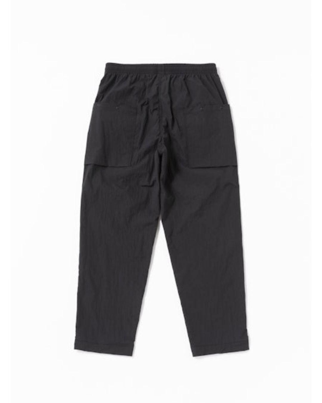 デザインはBaseballアンパイアの腰回りシルエットを参考に、大きめのマチ付きポケットを配置。ウエストはゴムとドローコード仕様で、仕上がり寸法より約10cm程度の可動域があります。裾にかけて強めのテーパーをかけ、全体をすっきりとしたシルエットに仕上げています。